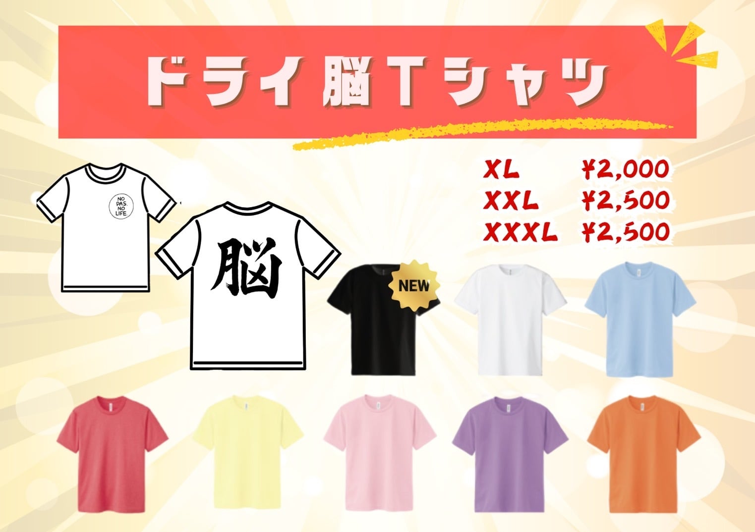 ドライ脳ロゴTシャツ XL 2,000円 身丈74 身幅56 袖丈23 売り切れ次第終了予定
